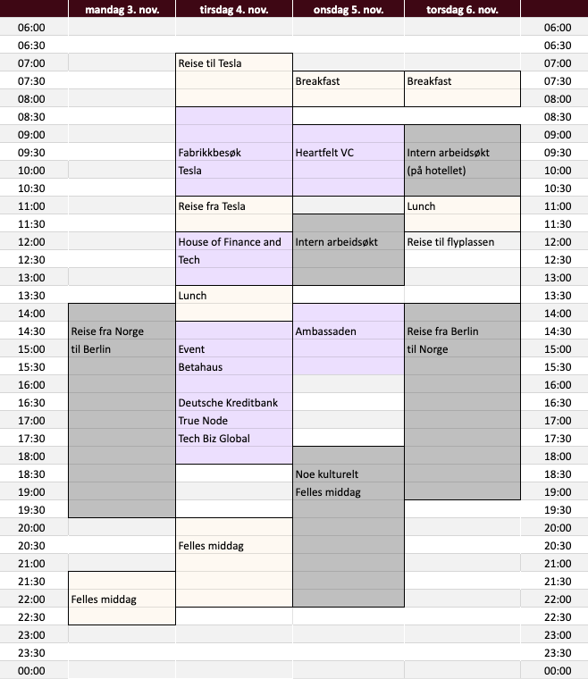 Gjennom oppholdet i Berlin kombinerer vi faglig innsikt med felles refleksjon, nettverksbygging og gode opplevelser. Vi besøker selskaper og miljøer som på ulike måter berører temaer som fintech, AI, industri og Europas økonomiske utvikling.